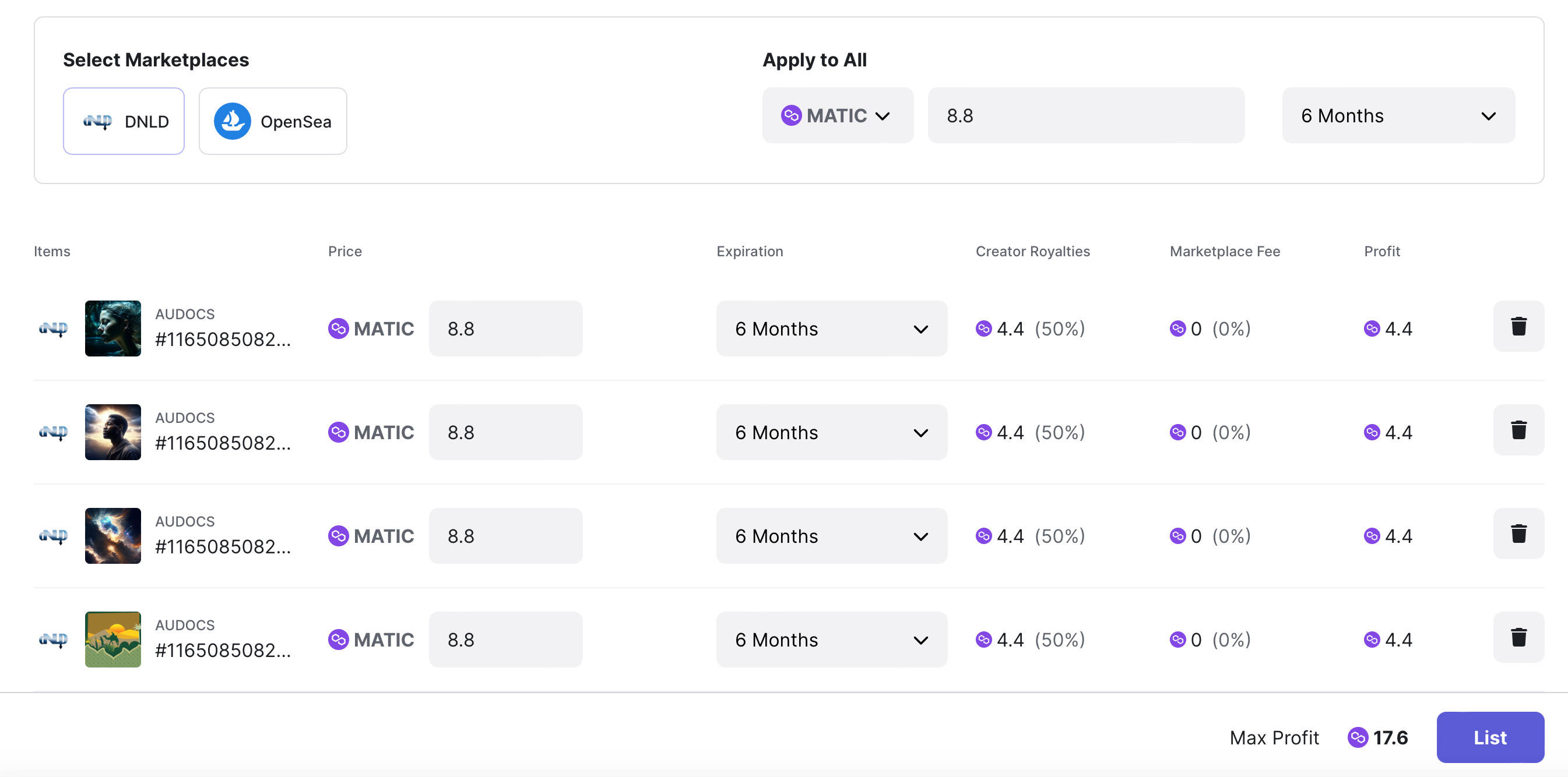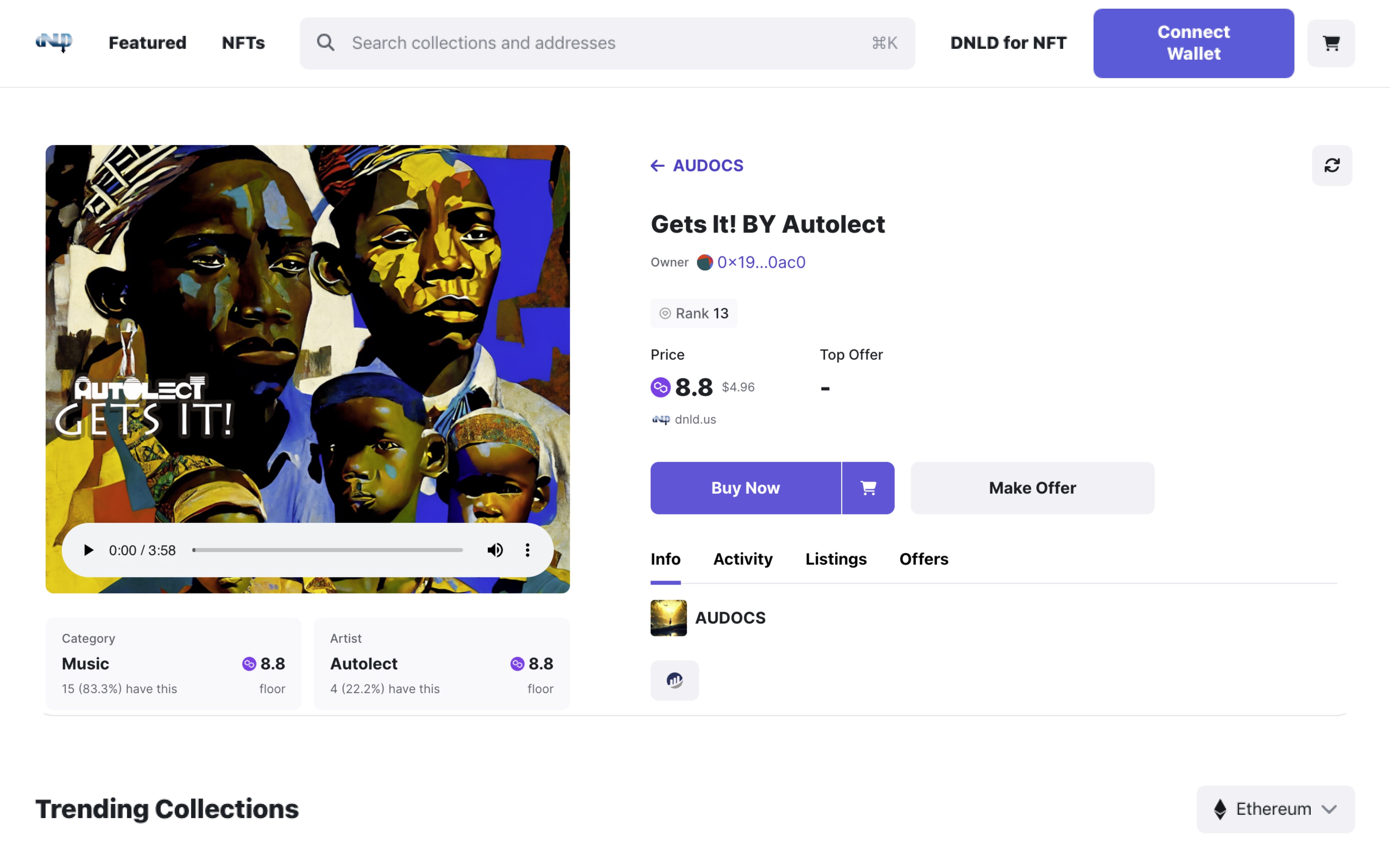DNLD simplifies the process by providing a secure platform for artists to retrieve their catalogs. As well as listing and trading them as NFTs. DNLD also allows users to set their own prices for NFTs they buy and sell, maximizing their profits.