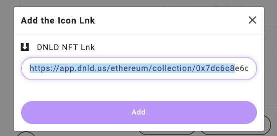 After selecting, add your collection address from app.dnld.us. Click add and thats it.